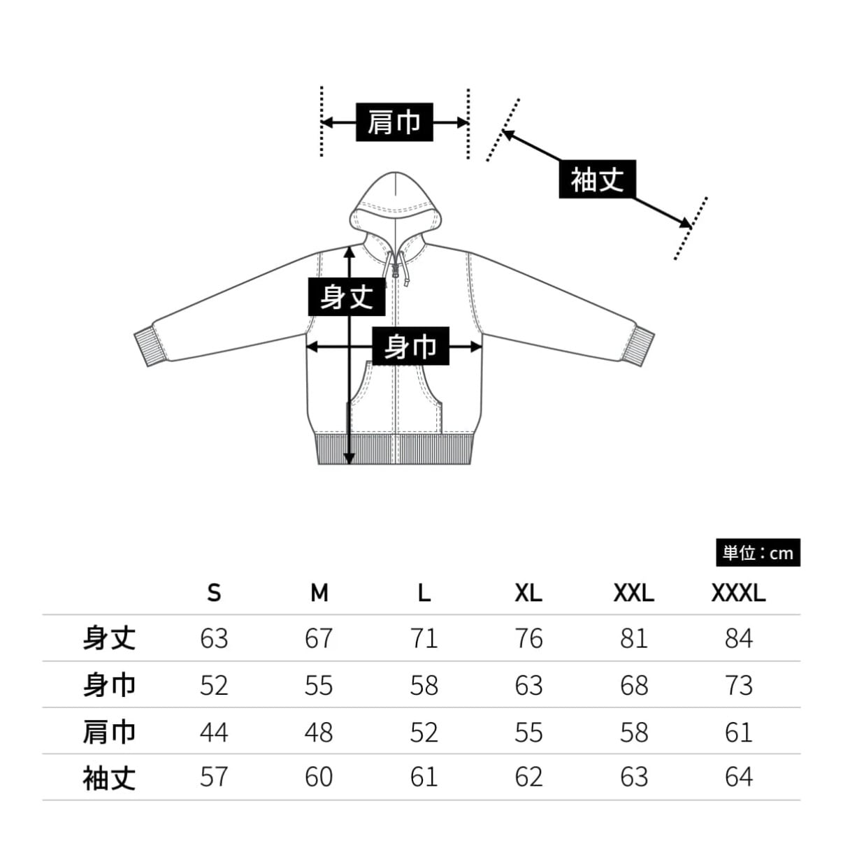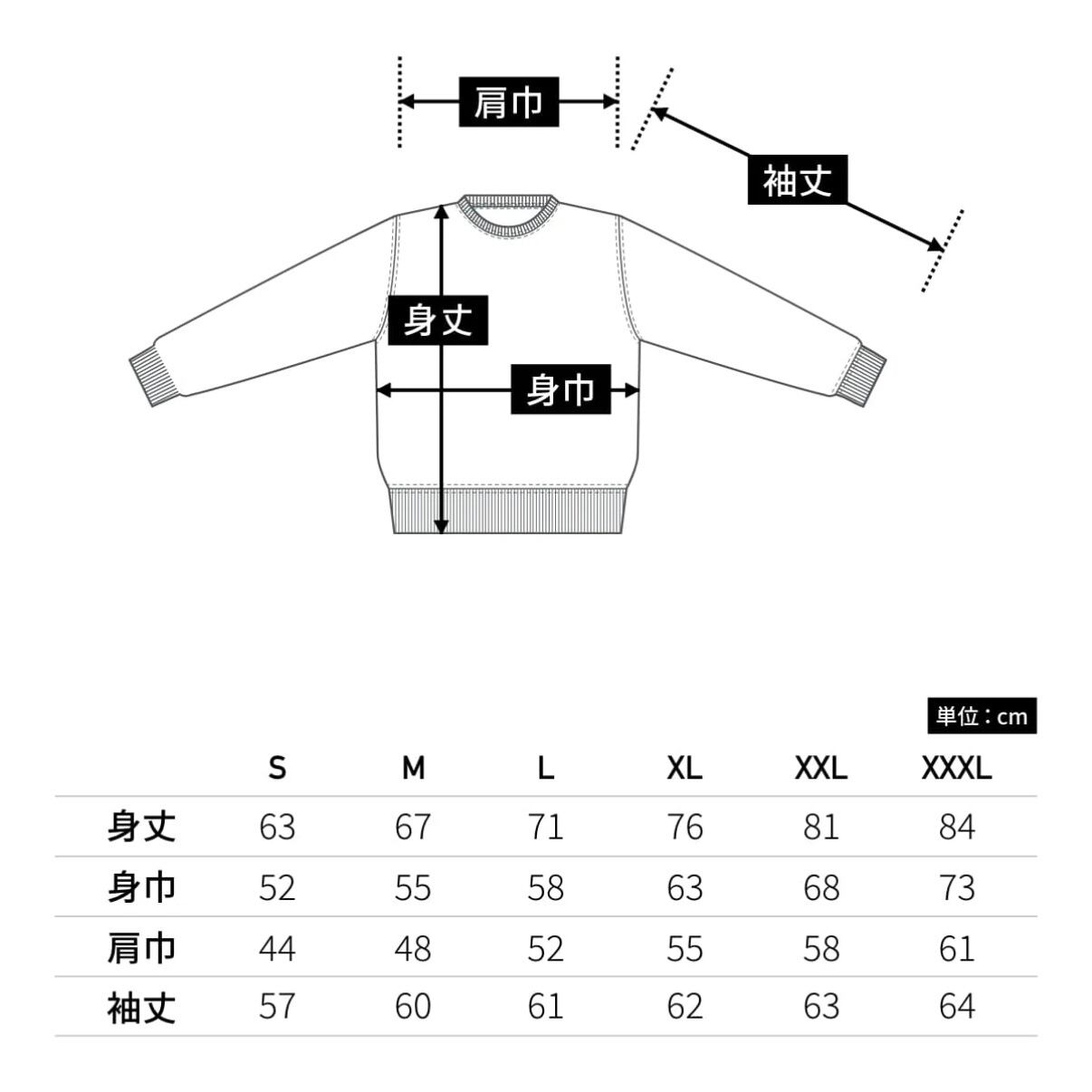 サイズ展開S〜XXL